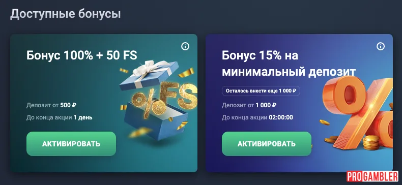 - Бонус на 2-й депозит 50% / 200 € + 50 вращений